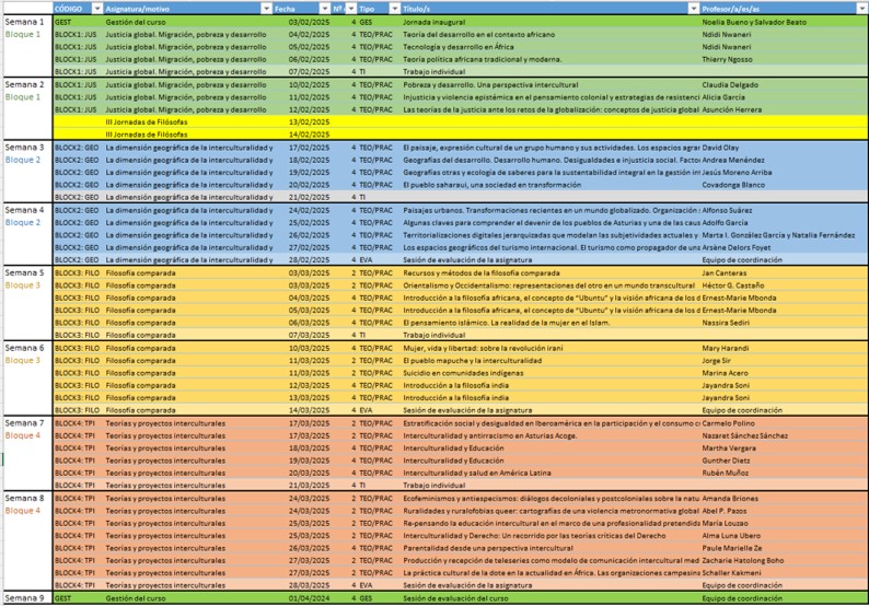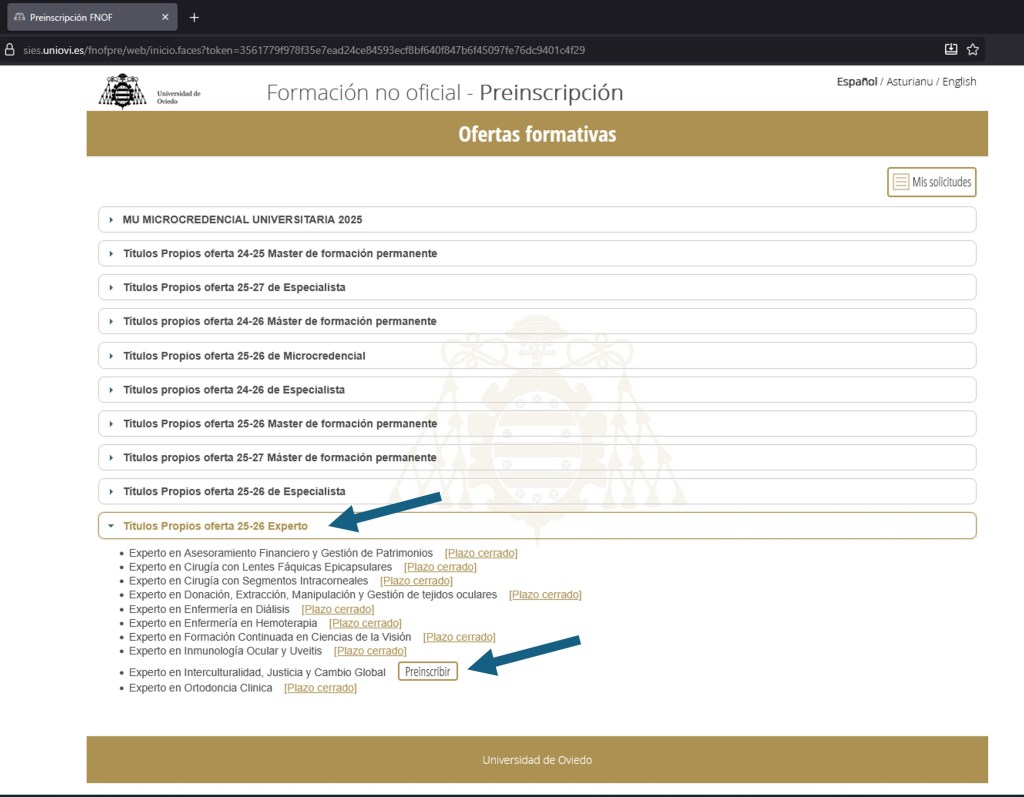 La sexta edición del curso para la obtención del Título Propio de Experta/o Universitaria/o en Interculturalidad, Justicia y Cambio Global de la Universidad de Oviedo se celebrará durante los meses de febrero y marzo de 2026. No obstante, es necesario realizar los trámites de preinscripción y matrícula a partir del verano de 2025 siguiendo las instrucciones y el procedimiento del Centro Internacional de Posgrado: https://cei.uniovi.es/postgrado/titulosyfc/preinscripcionymatricula. (Pre-registration open: https://cei.uniovi.es/postgrado/titulosyfc/preinscripcionymatricula click on Preinscripción on-line).